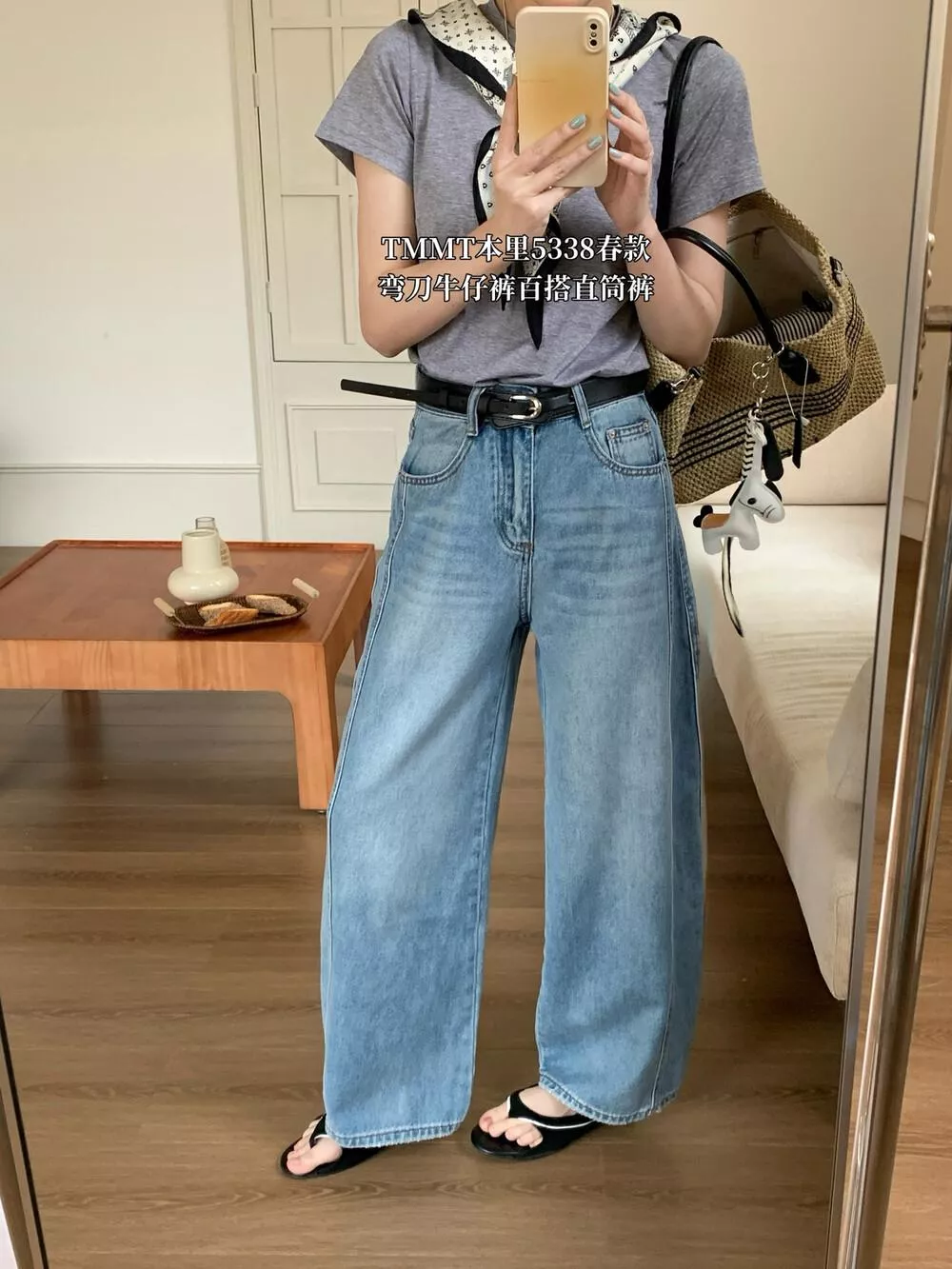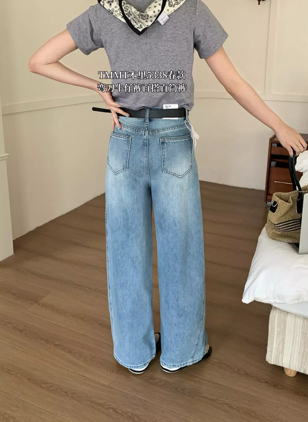 休閒百搭彎刀褲牛仔褲(配腰帶)5338#LKZ