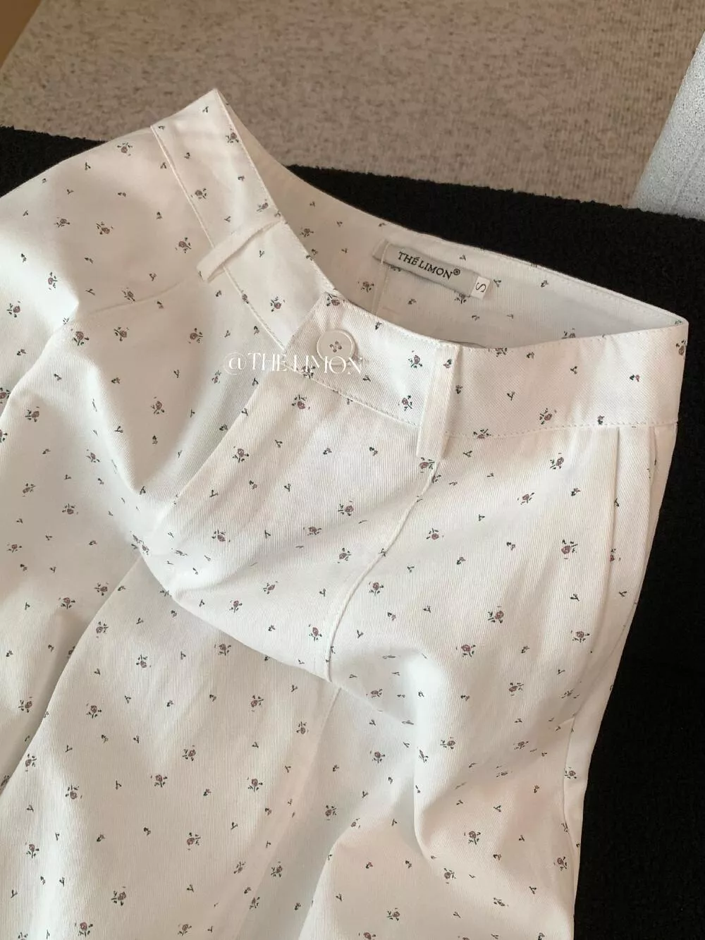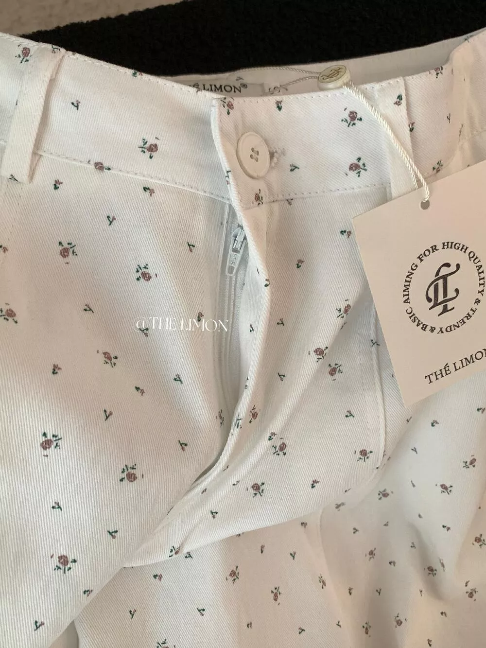 【檸檬綠茶】設計感小眾碎花顯瘦彎刀褲休閒褲10229# LWD