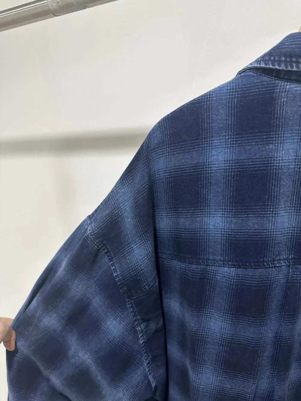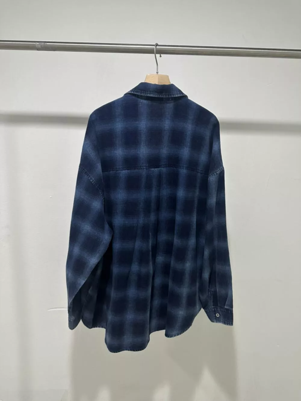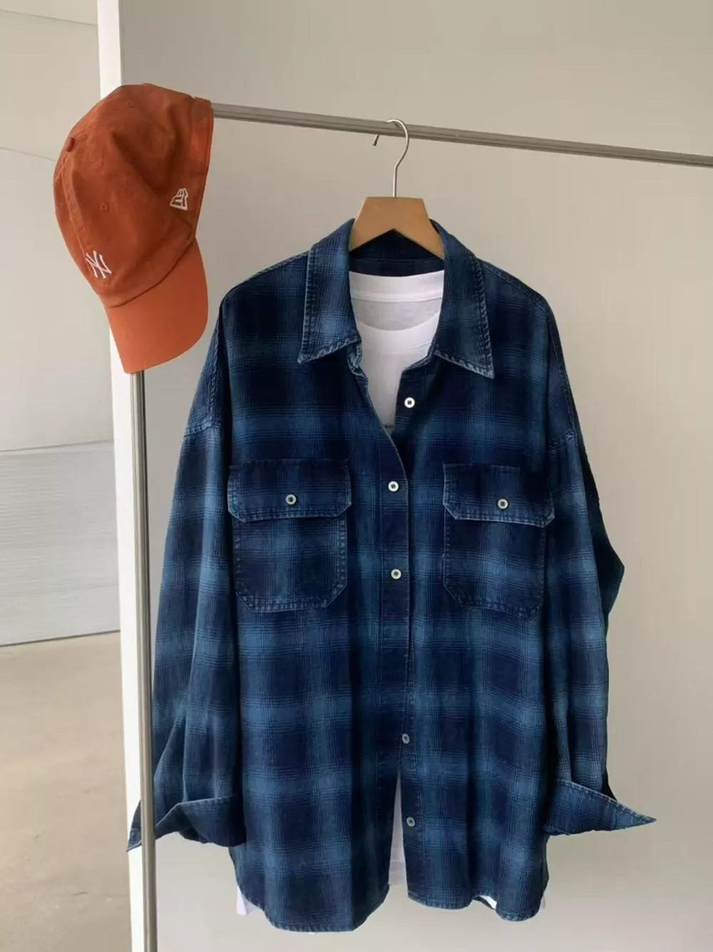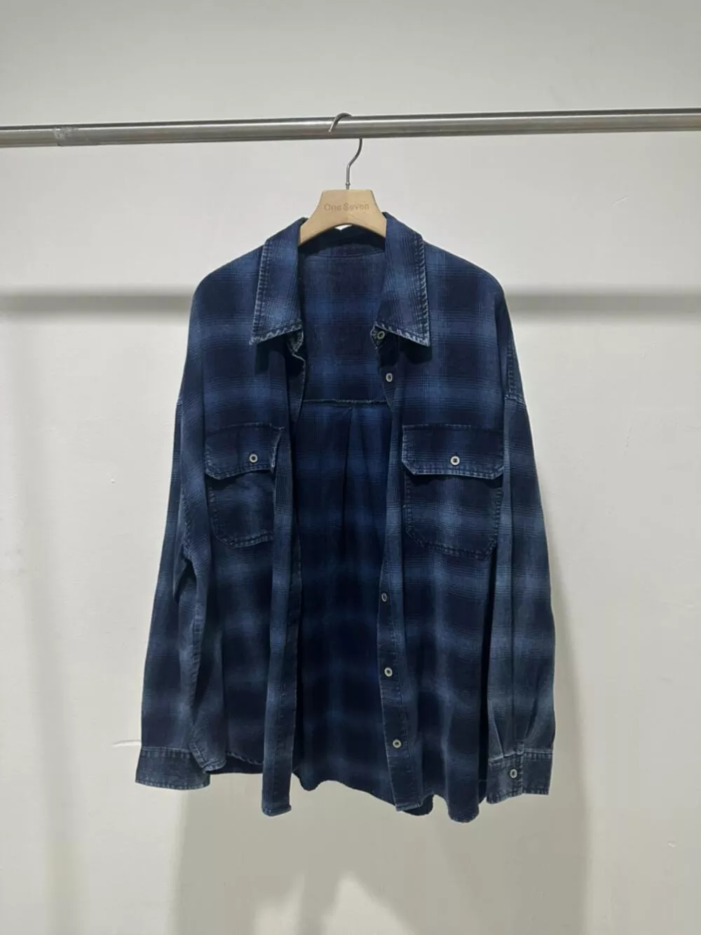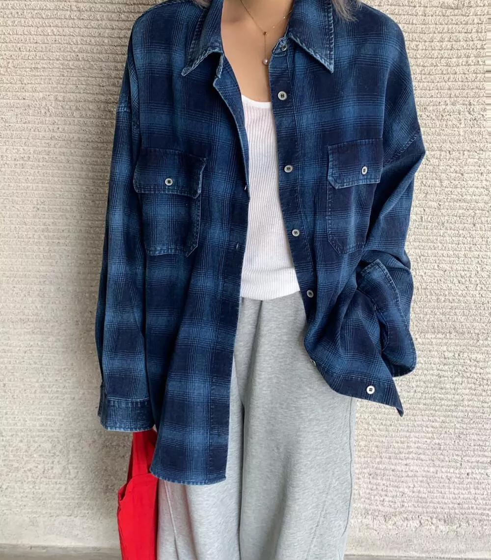 【ONE SEVEN】复古风格翻领宽松格纹衬衫 C2227# LSL