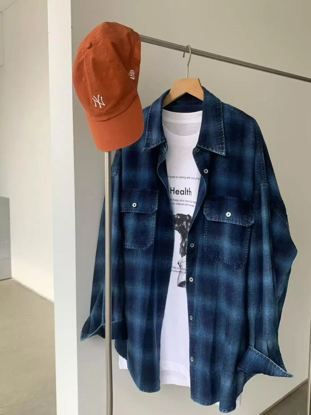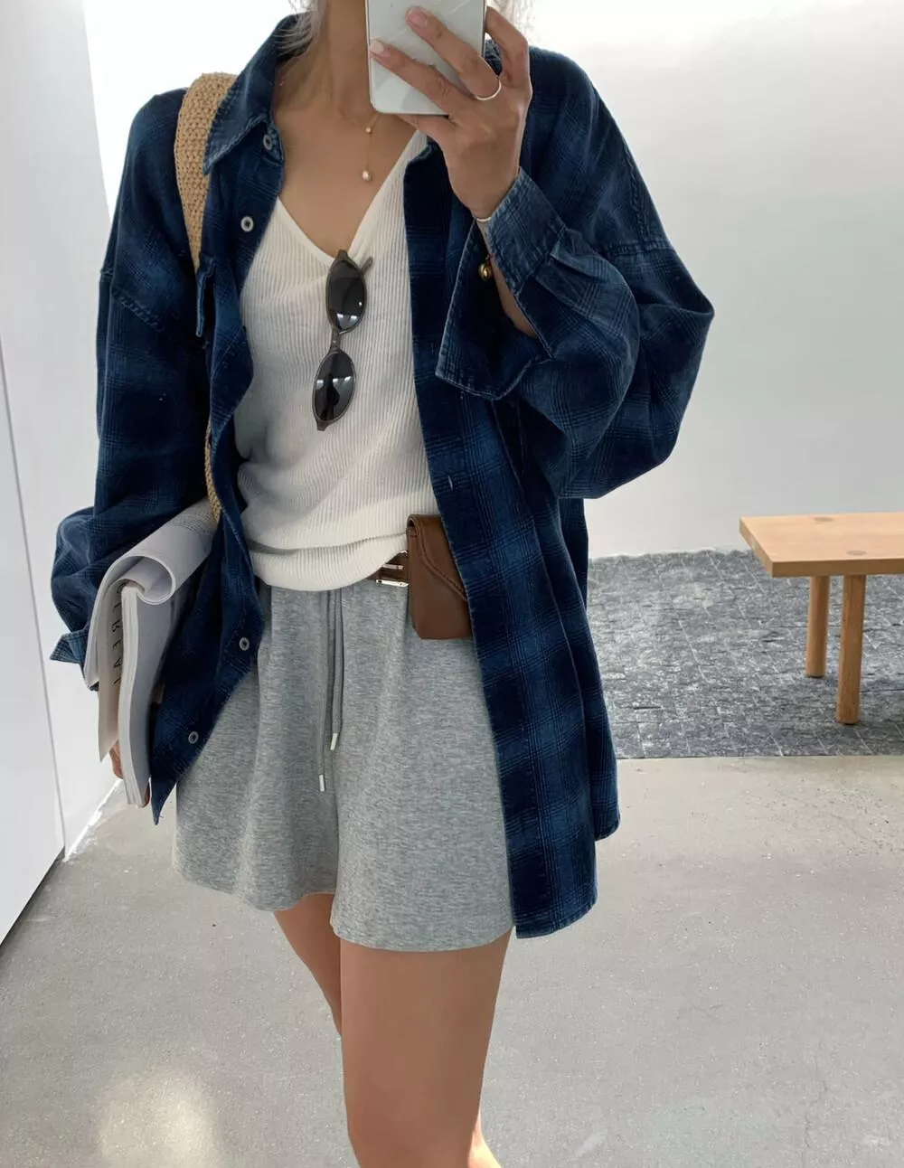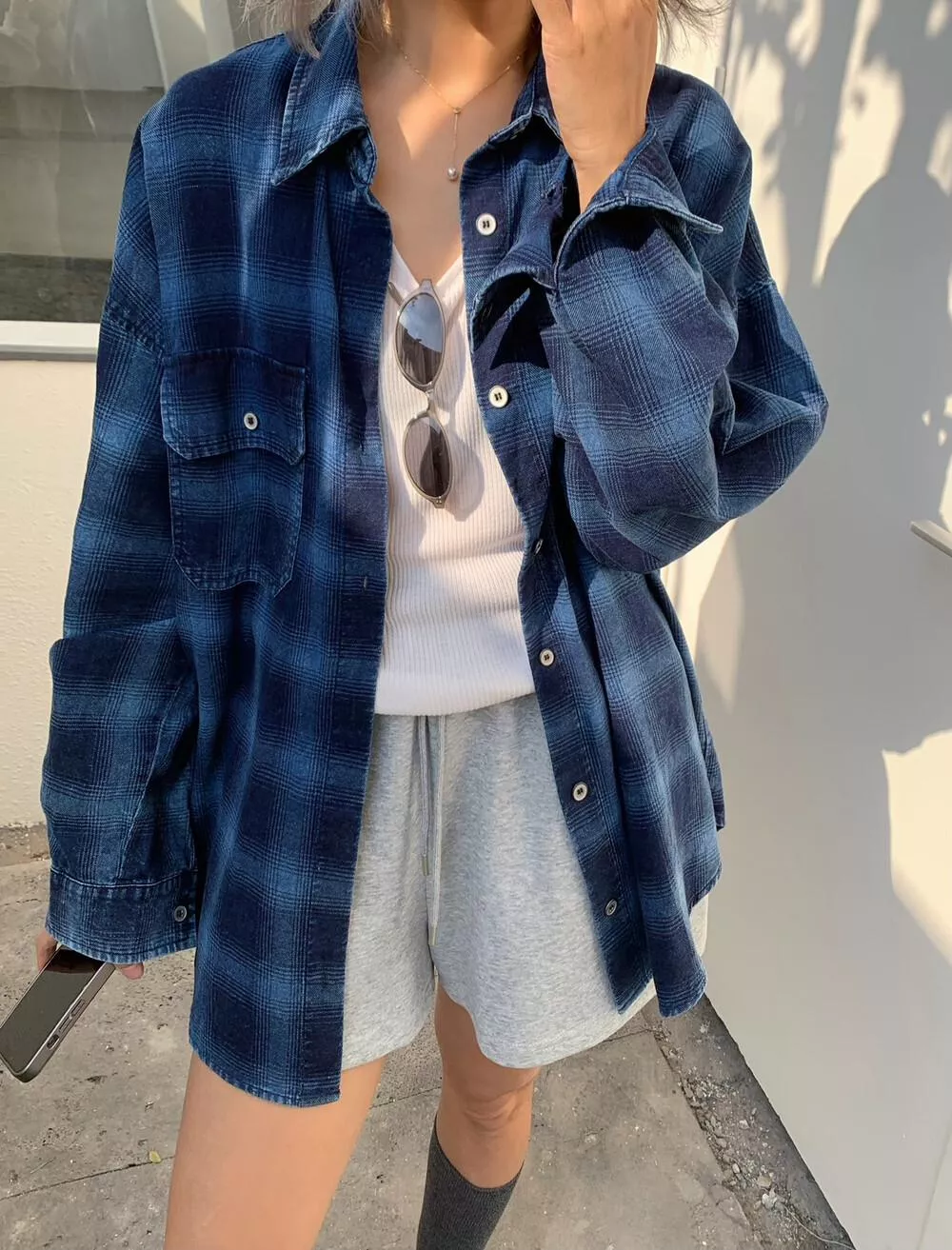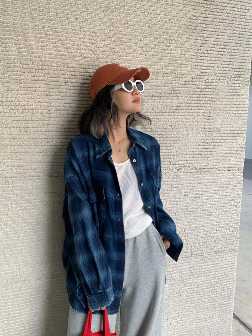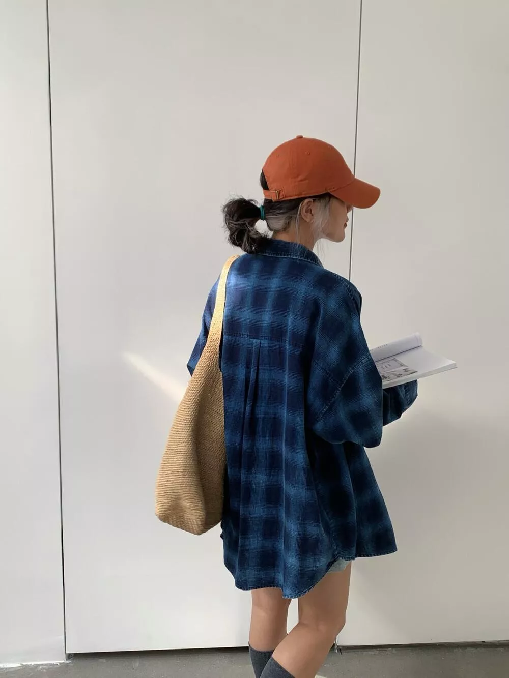 【ONE SEVEN】复古风格翻领宽松格纹衬衫 C2227# LSL