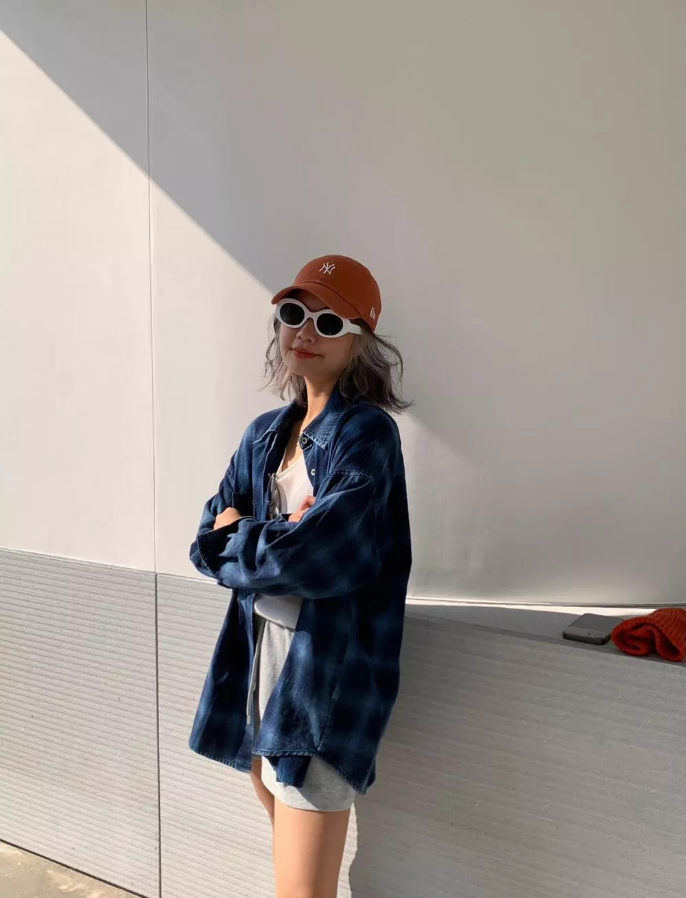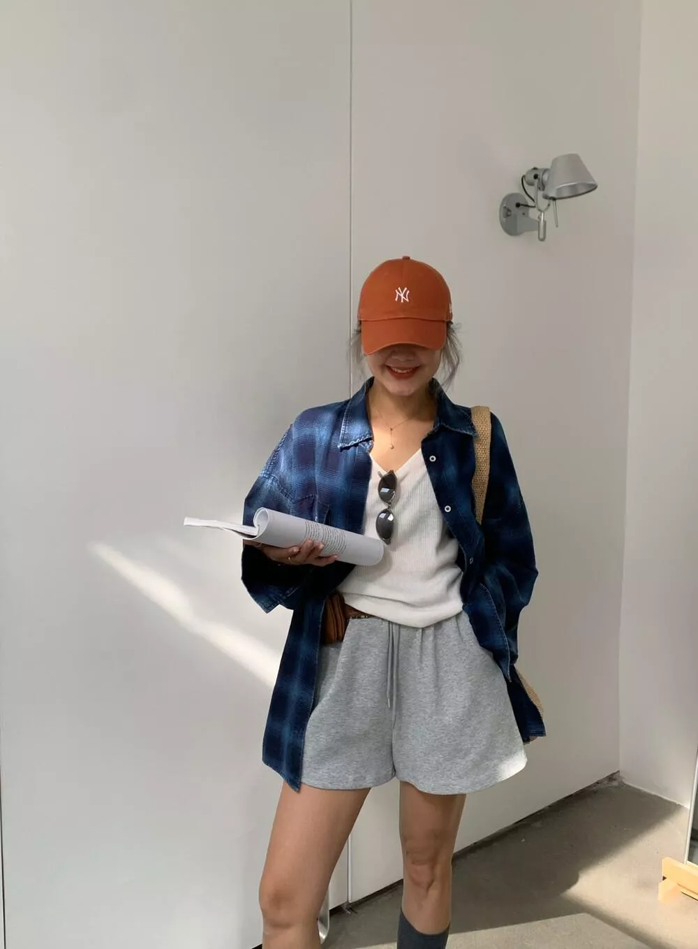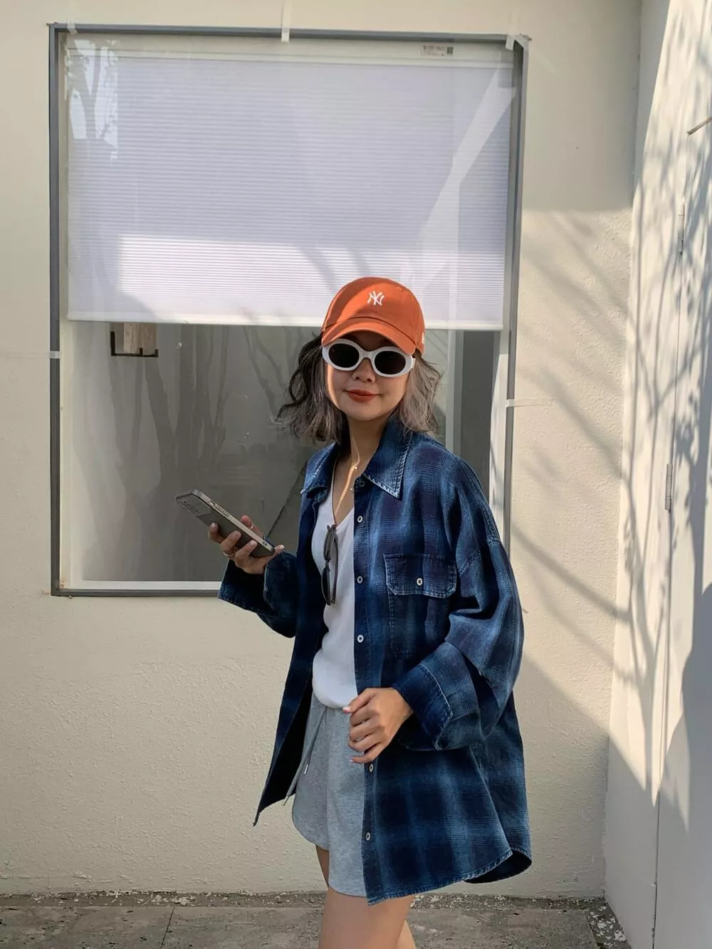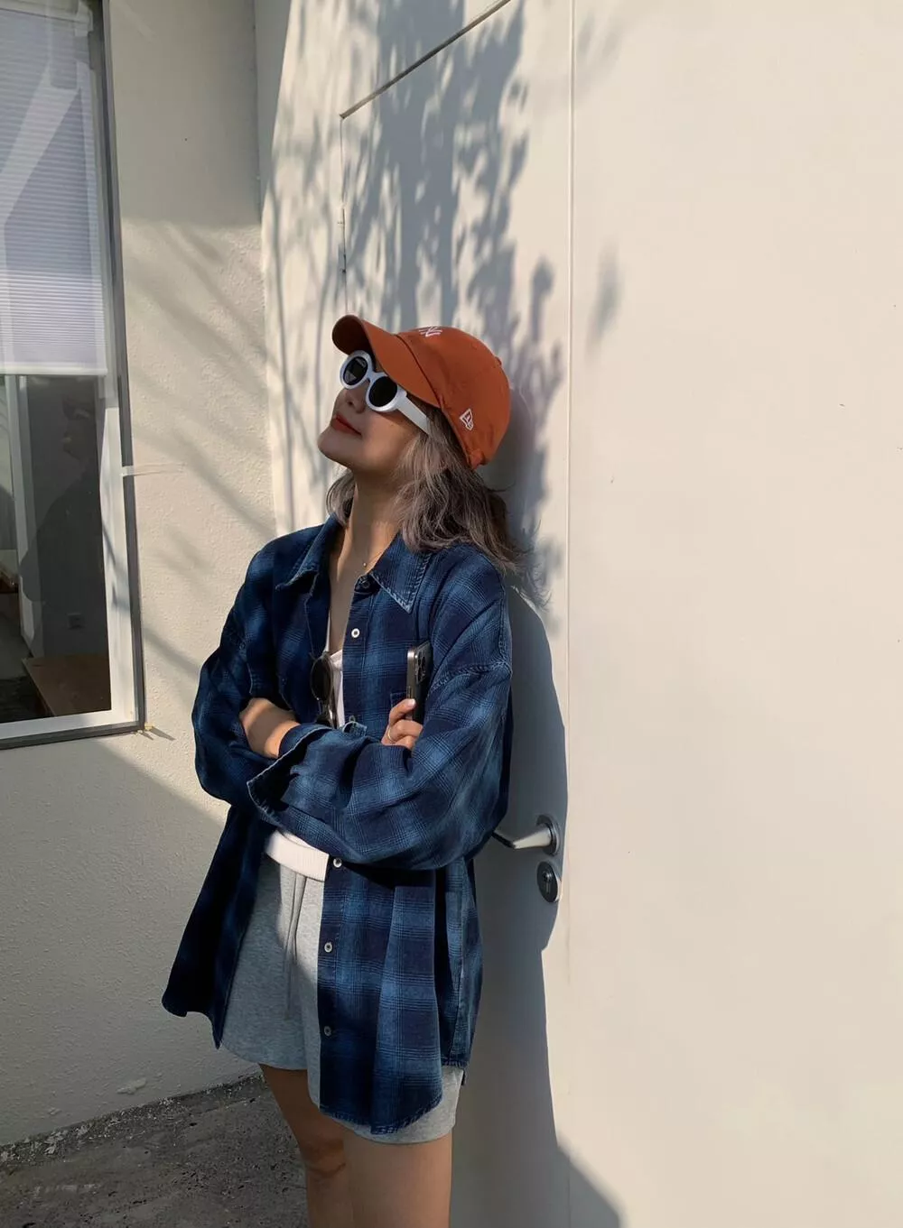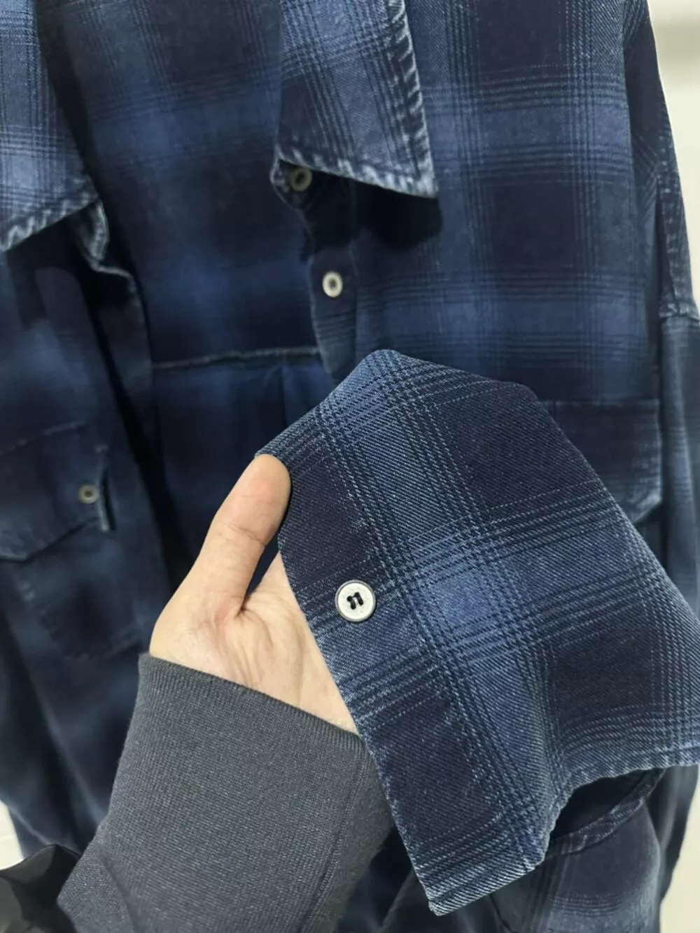 【ONE SEVEN】复古风格翻领宽松格纹衬衫 C2227# LSL
