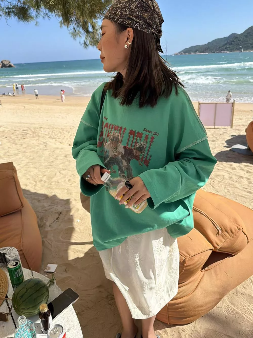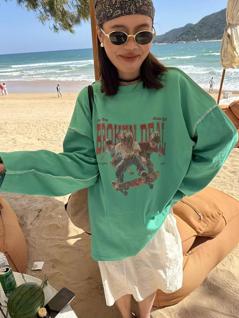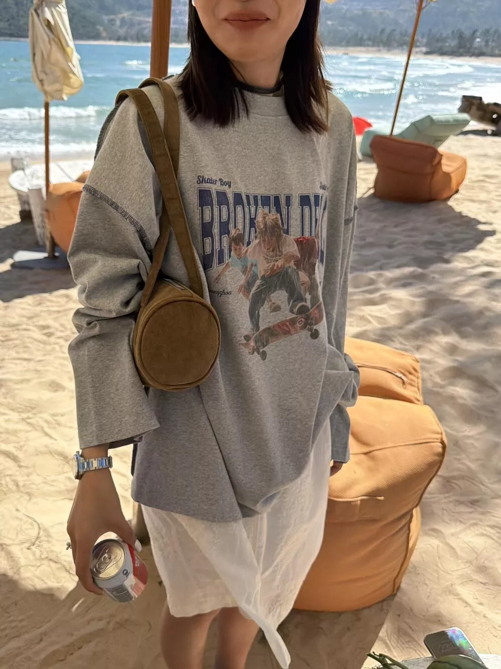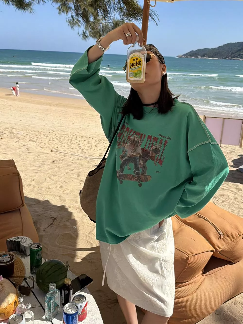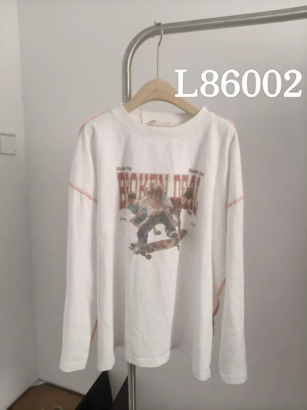 26年早春! 【SANBARA】潮流滑輪印花工藝撞色線跡休閒長袖T卹L86002# L