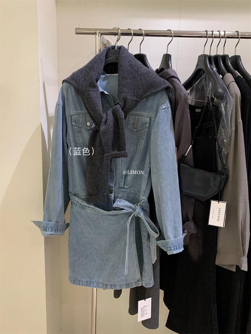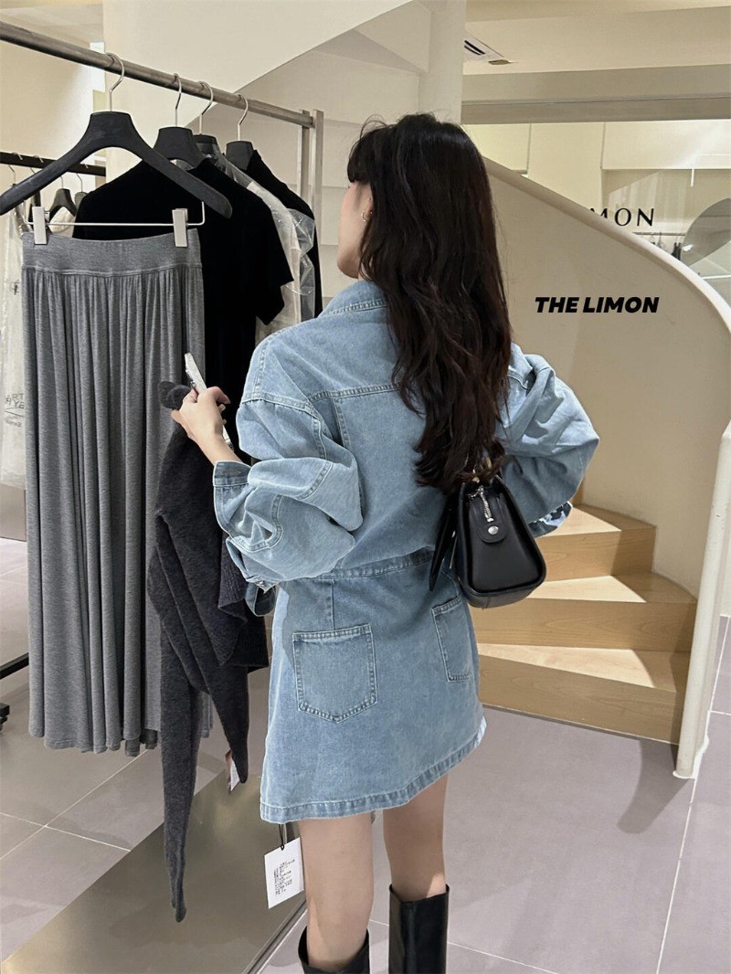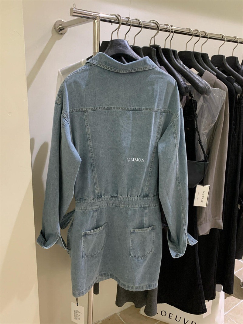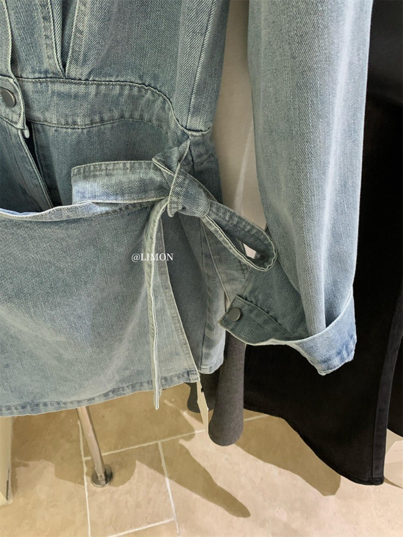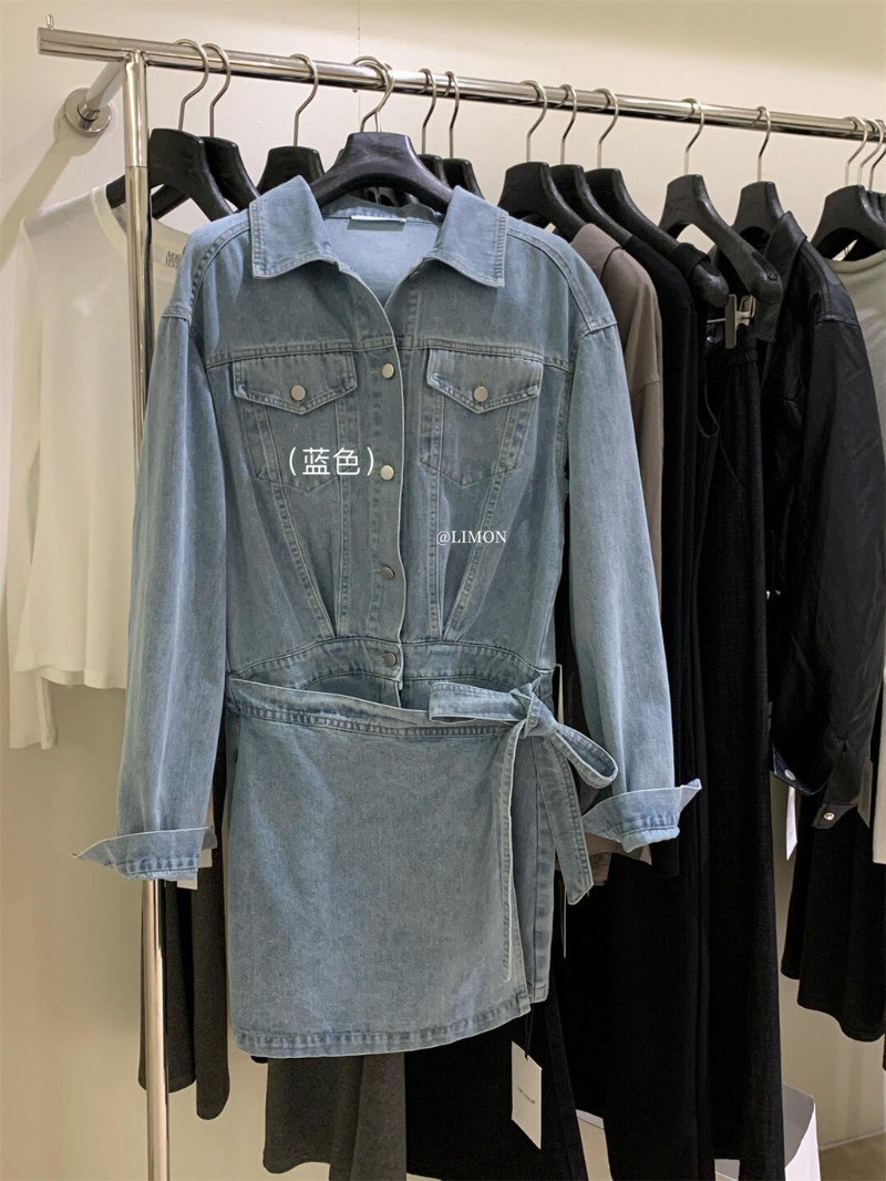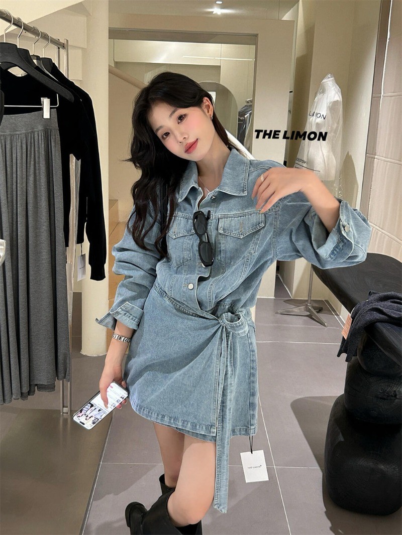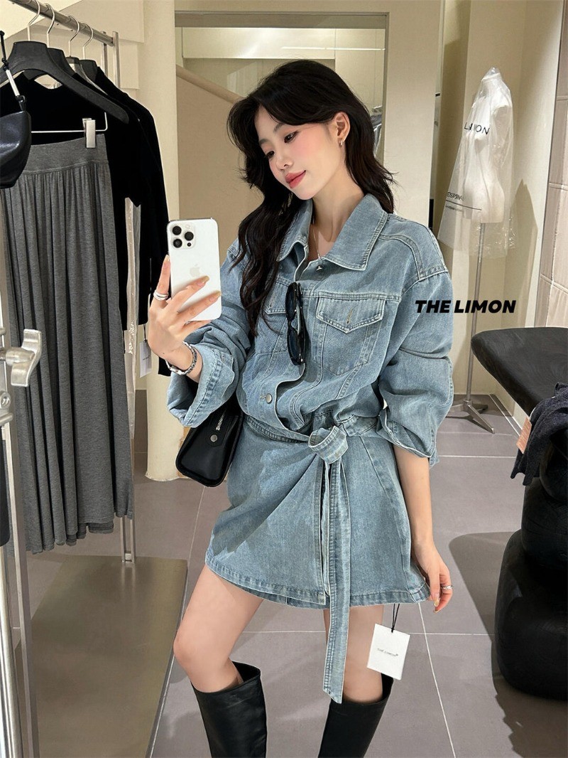 檸檬家 THE LIMON檸檬綠茶 復古不規則設計感收腰繫帶牛仔連衣裙女 1113 /女生洋裝 連身裙