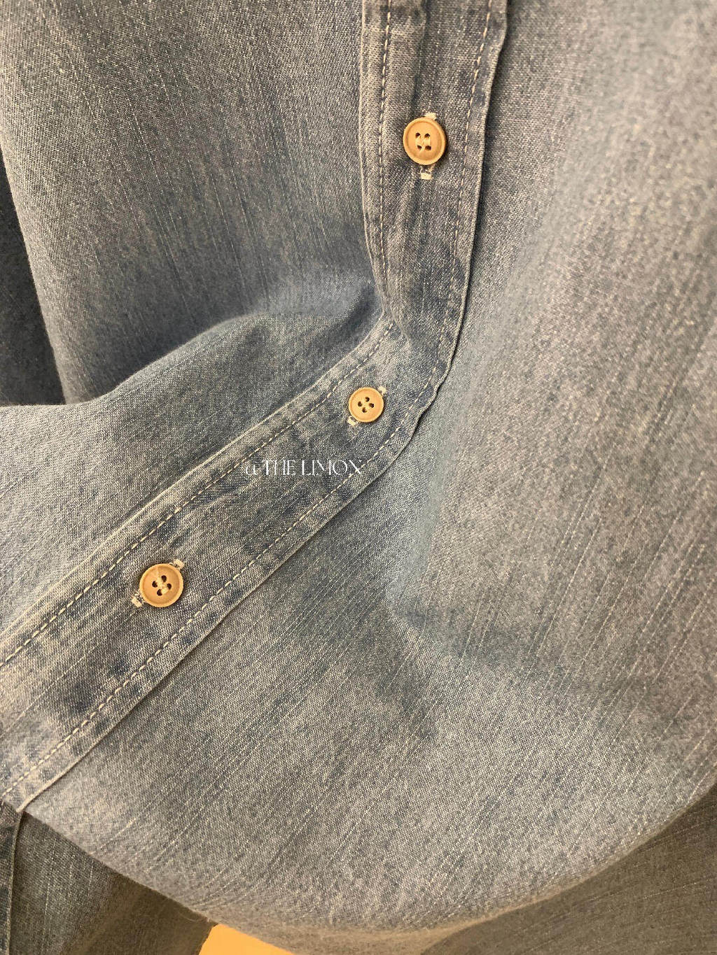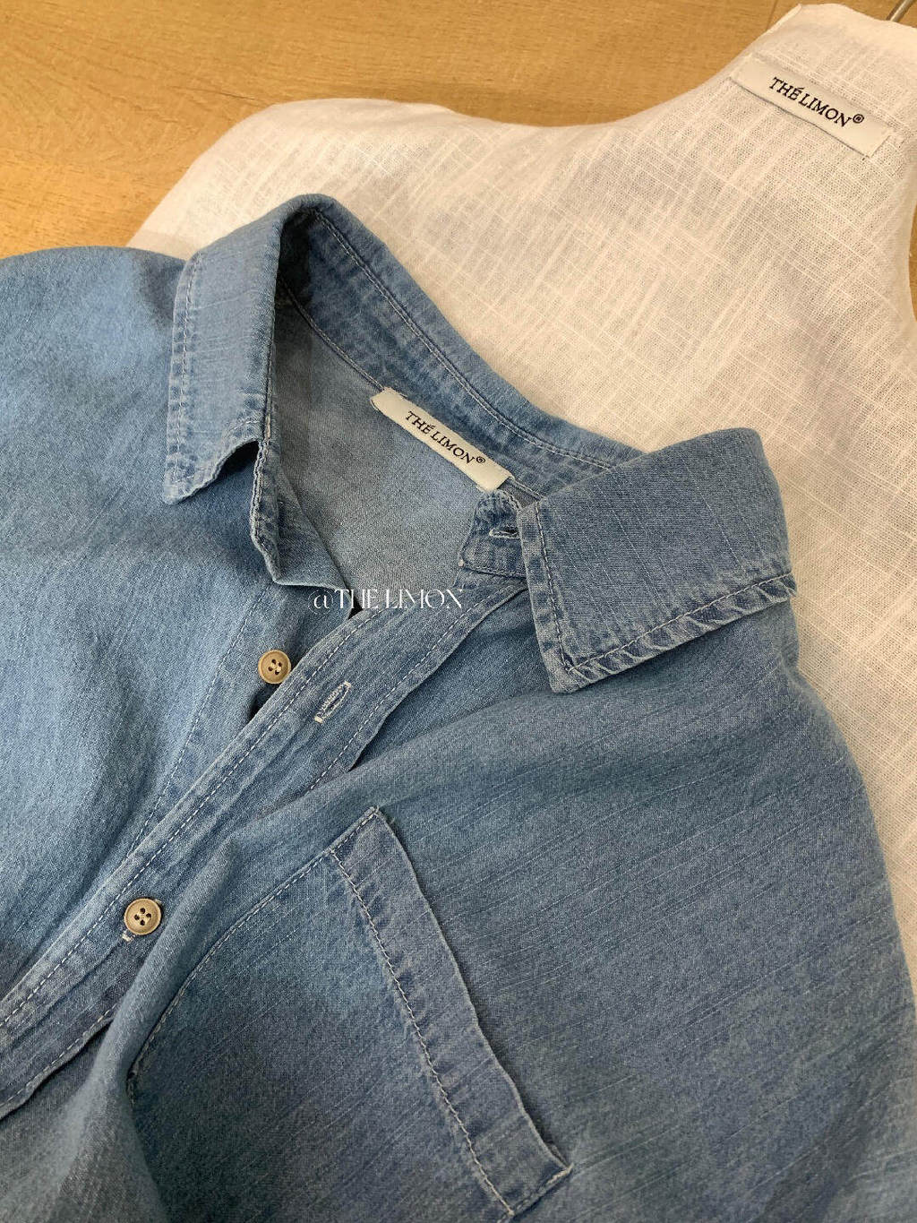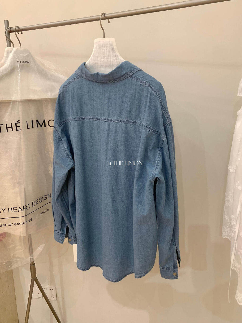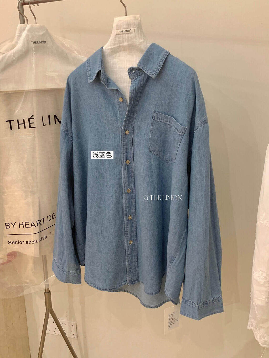 檸檬家 26年早春韓系chic淺藍色寬鬆休閒牛仔外套襯衫TM-1620