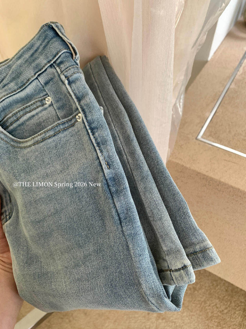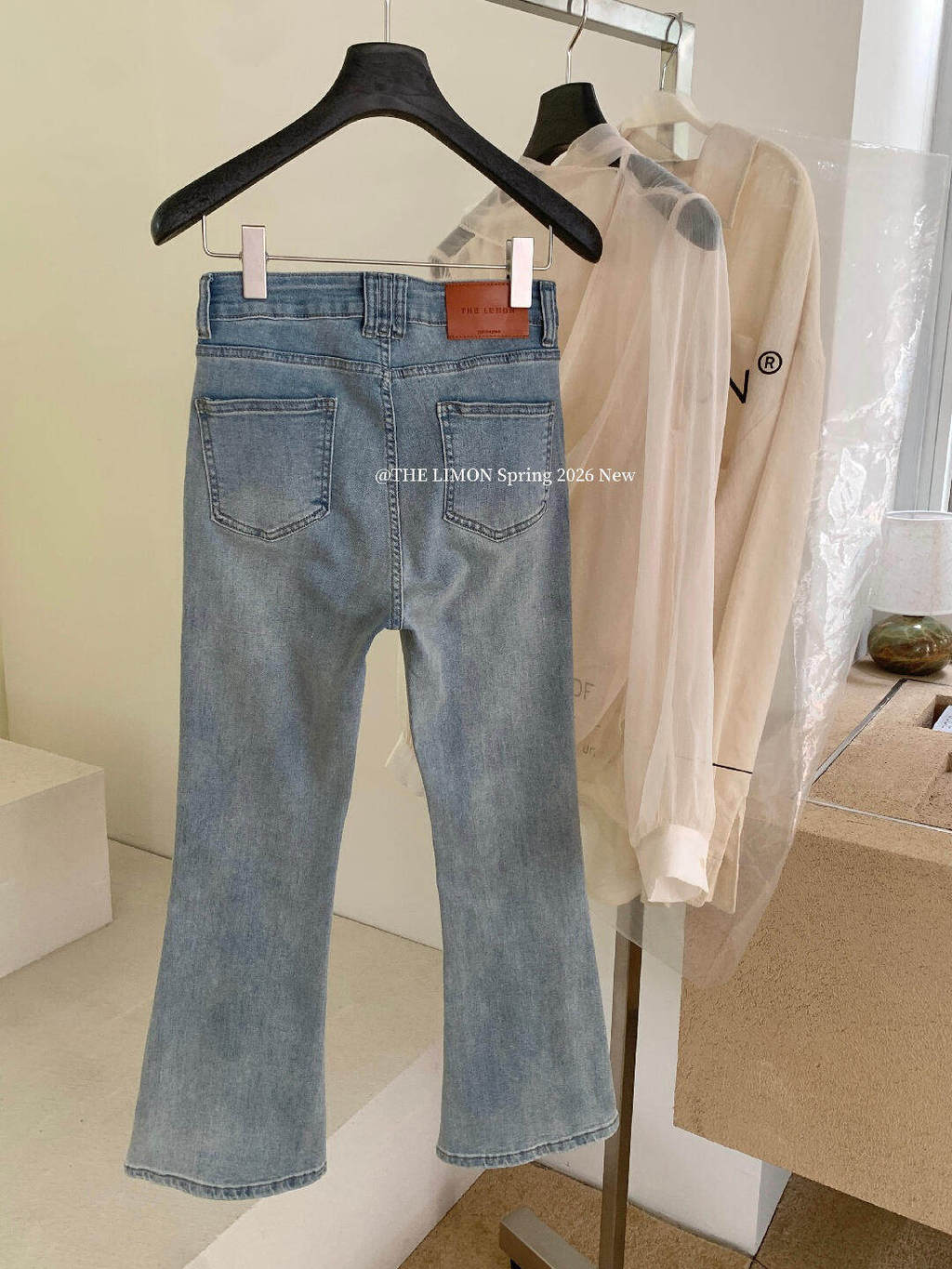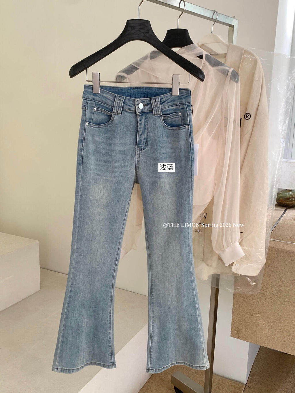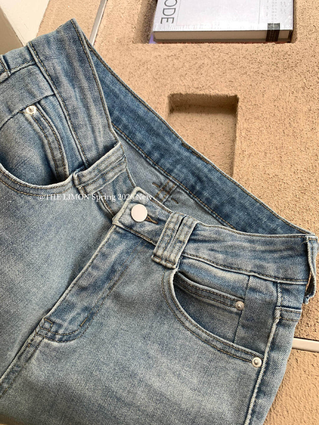 檸檬家 紙片人淺藍修身高腰顯瘦微喇牛仔褲YS1-D-2382