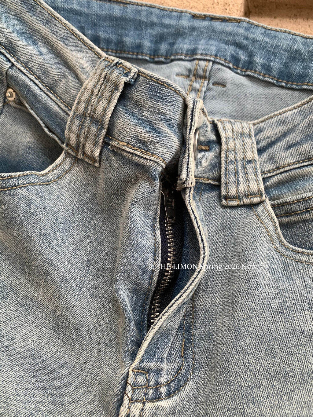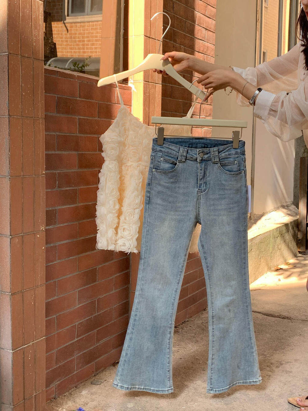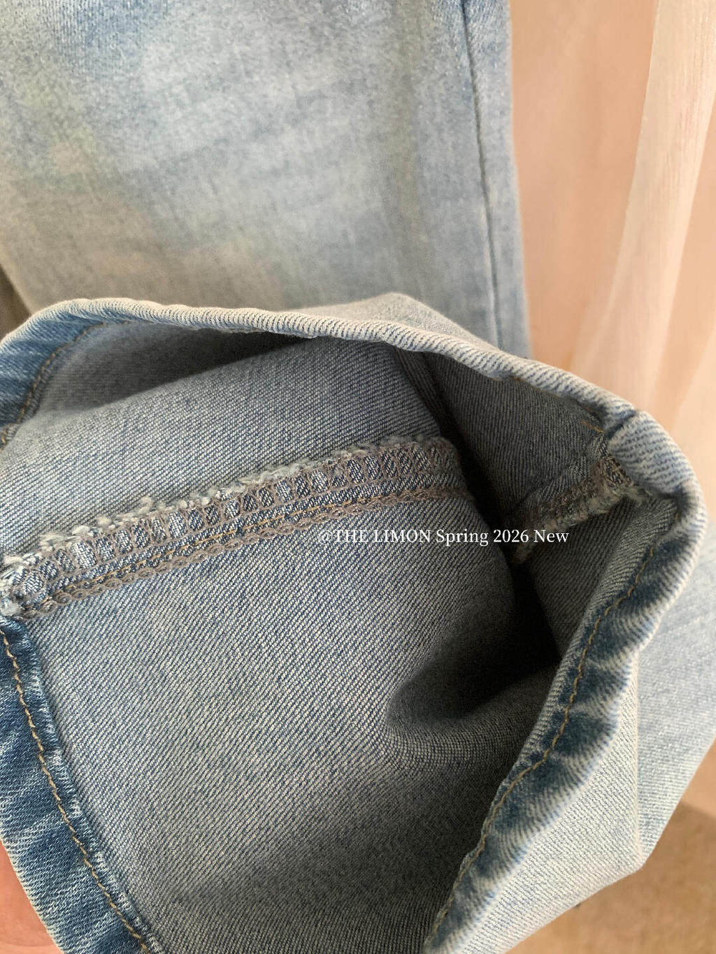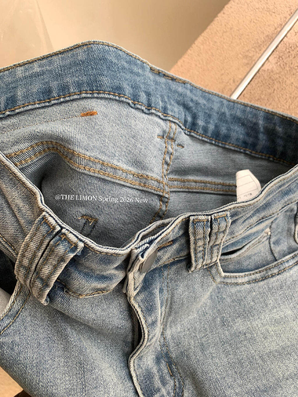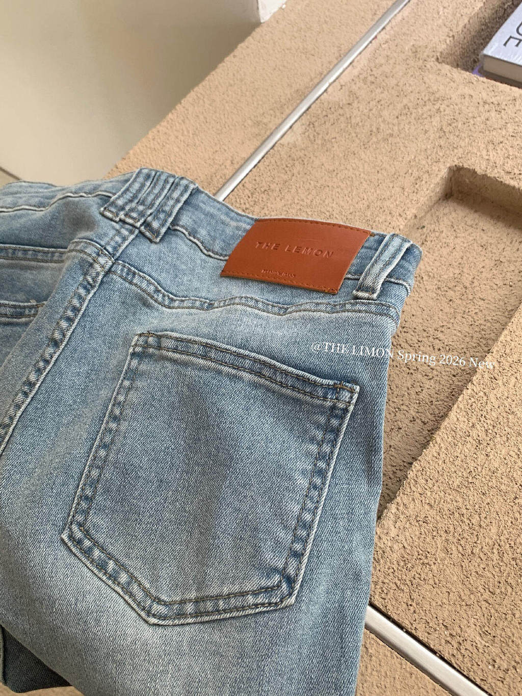 檸檬家 紙片人淺藍修身高腰顯瘦微喇牛仔褲YS1-D-2382