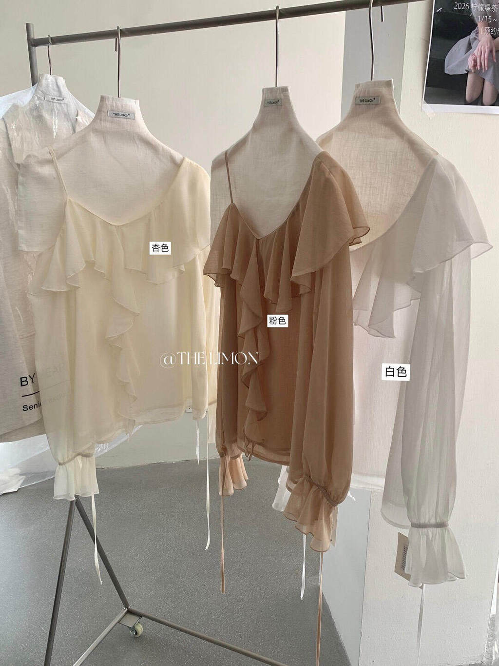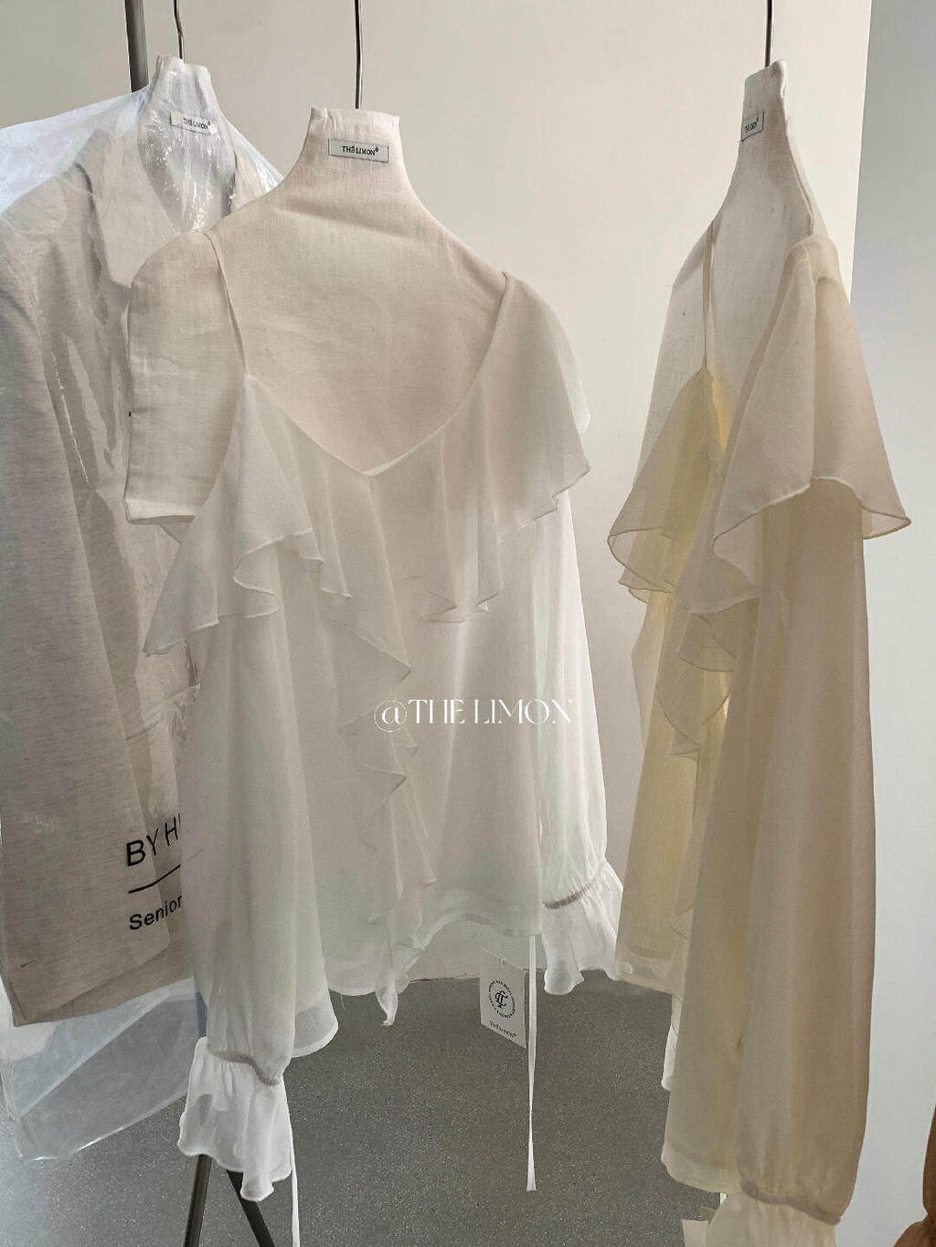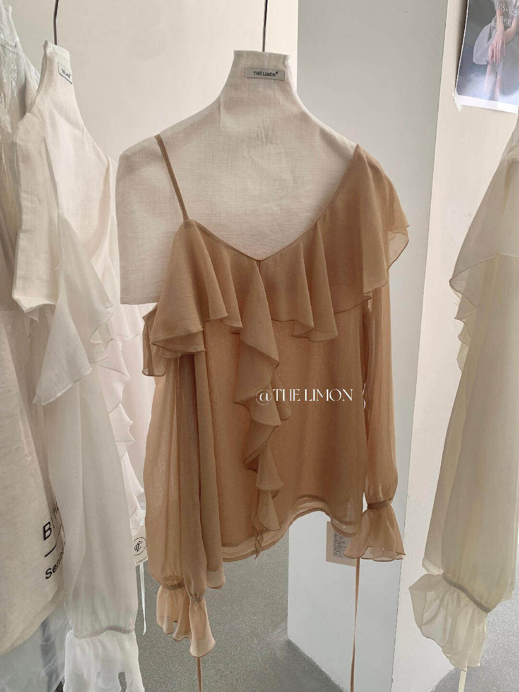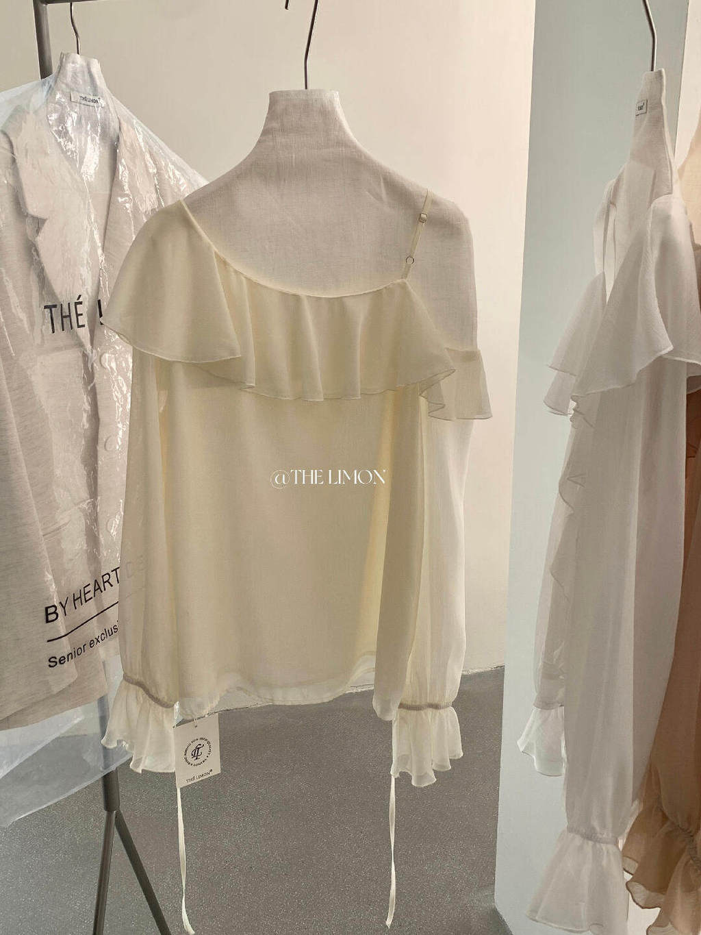 檸檬家 有點小特別~氣質溫柔荷葉邊露肩雪紡上衣小衫10172