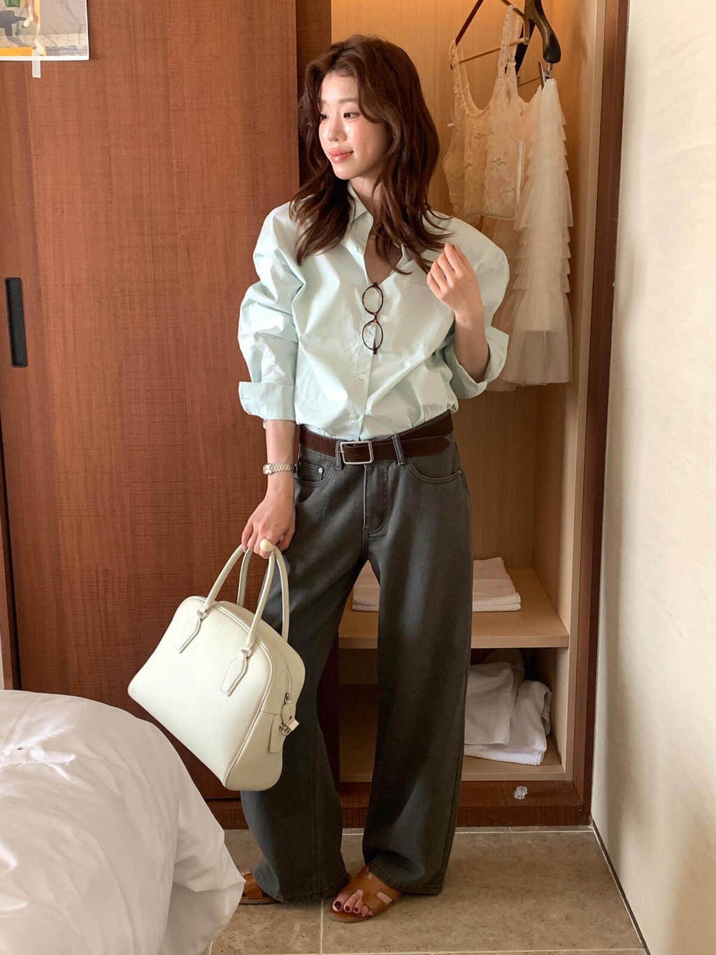 檸檬家 檸檬綠茶-韓女天菜高性價比多色簡約韓版純色襯衫10196