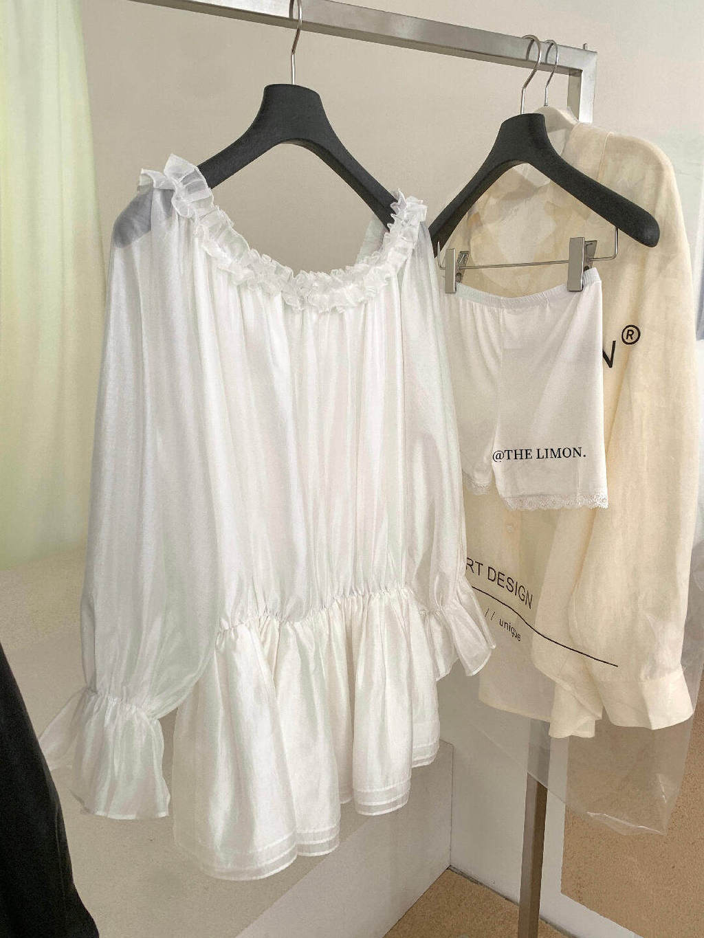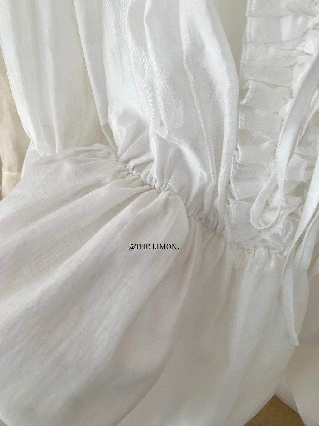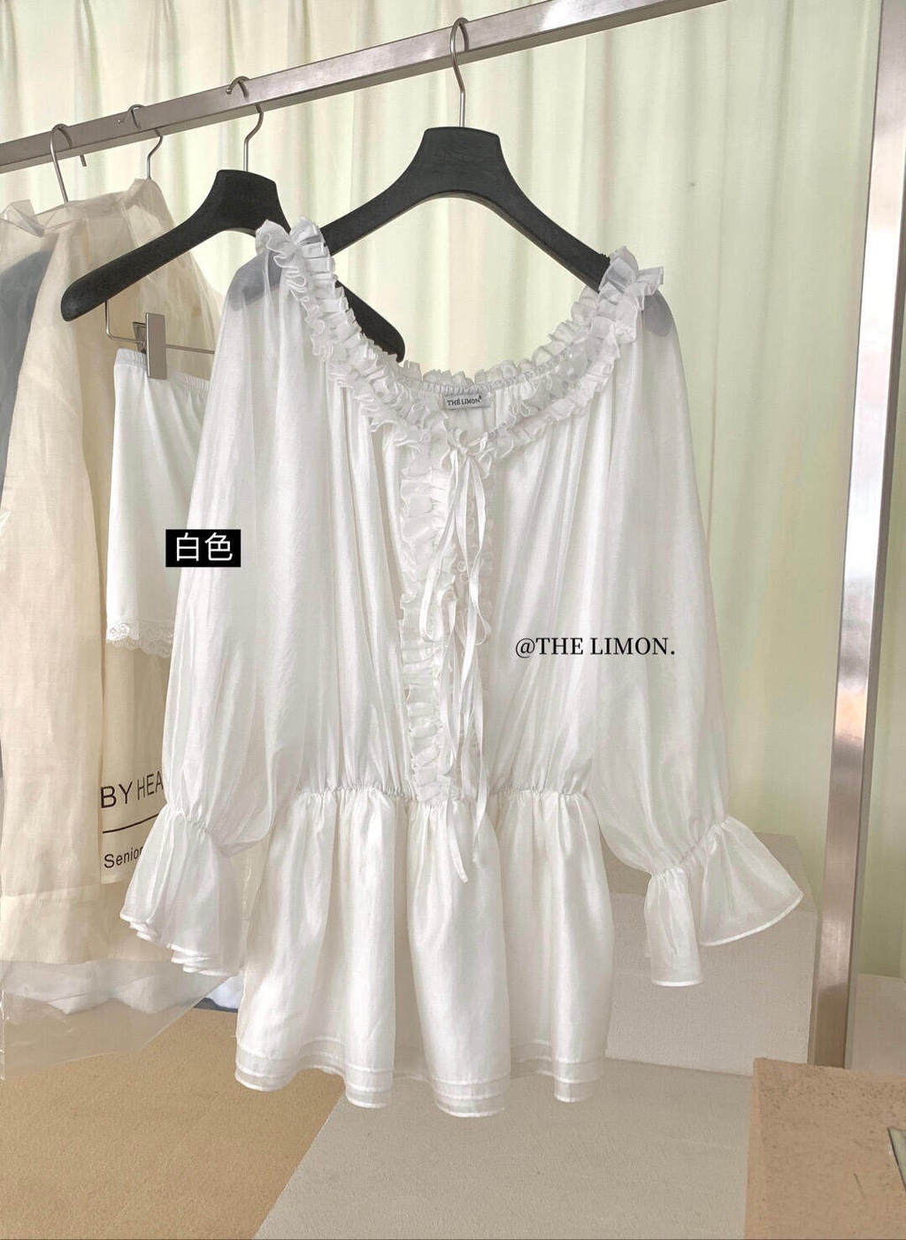 檸檬家 浮生半日·重工泡泡袖收腰蓬蓬裙連衣裙(配白色打底褲)10078