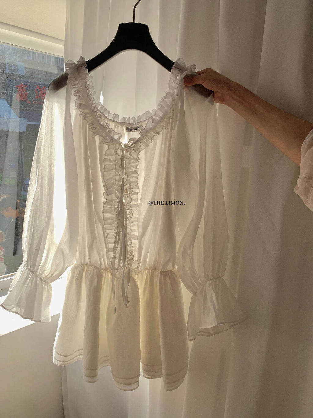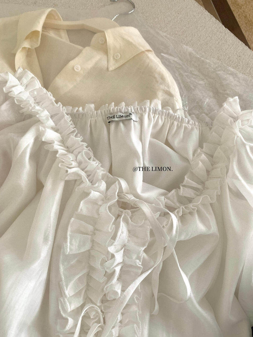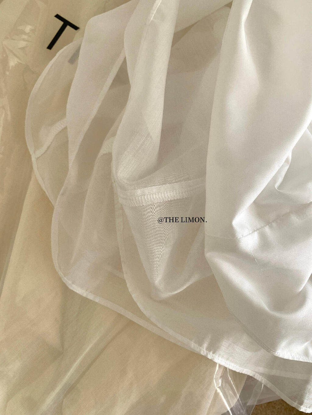 檸檬家 浮生半日·重工泡泡袖收腰蓬蓬裙連衣裙(配白色打底褲)10078