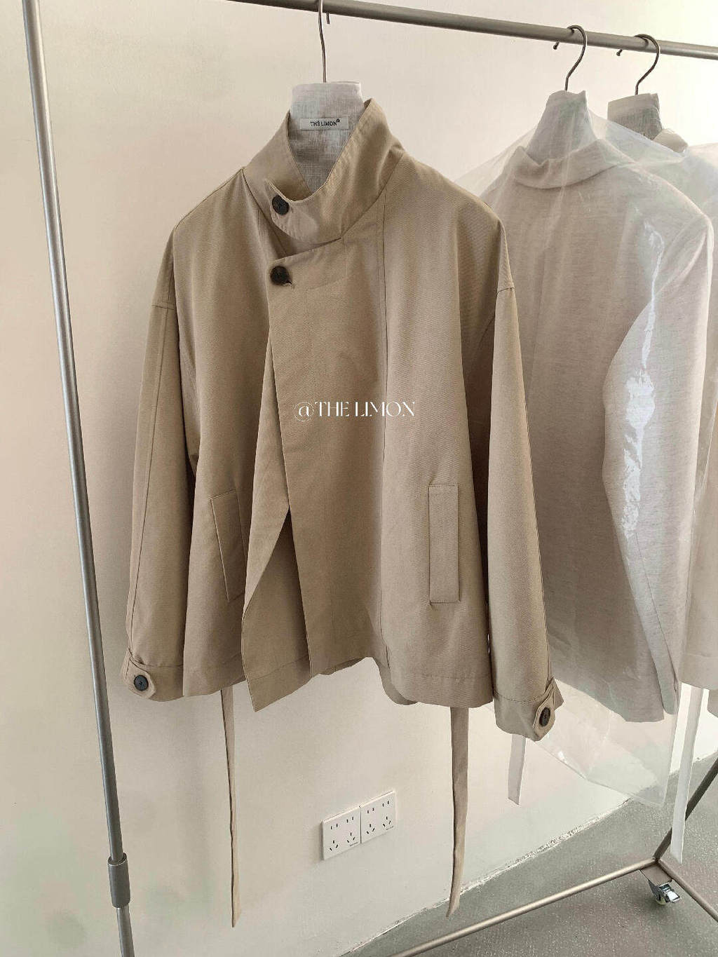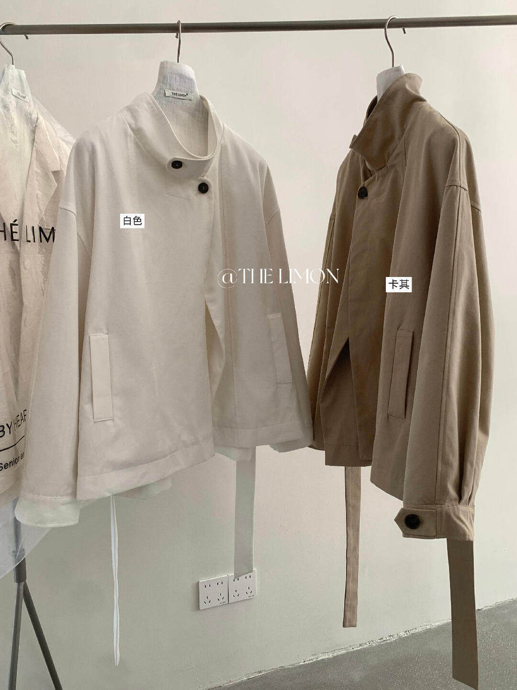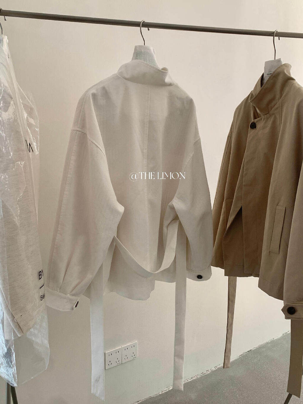 檸檬家 諾丁山下~高級感立領經典百搭寬鬆風衣(配腰帶)10133