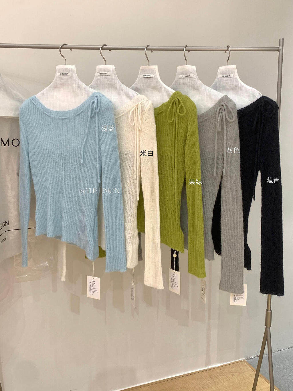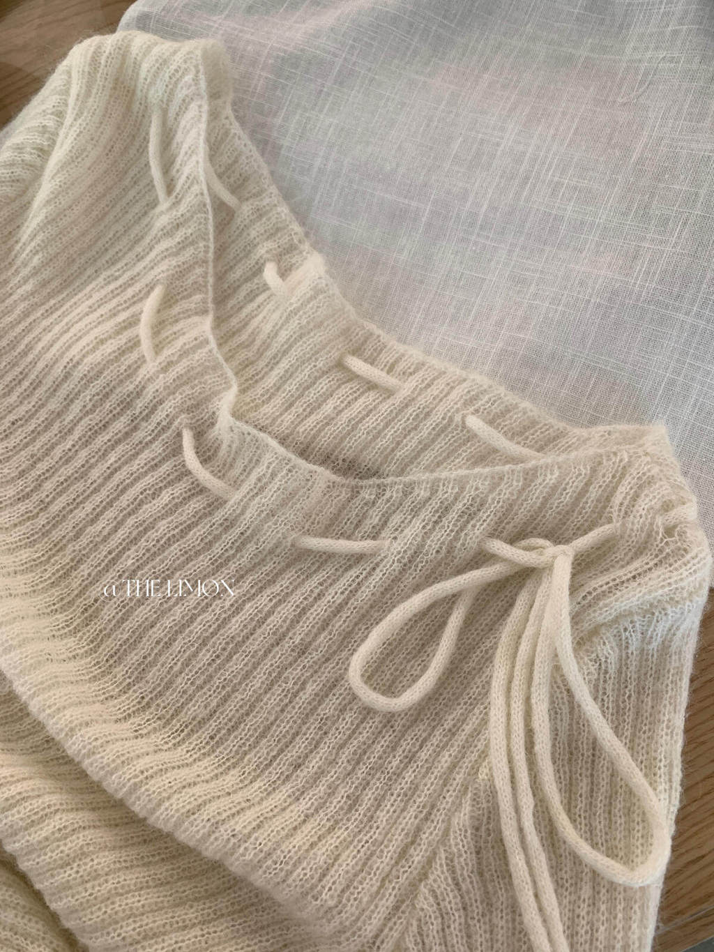 檸檬家 溫柔濾鏡設計感繫帶坑條修身顯瘦針織衫(含20羊毛)NM-8501