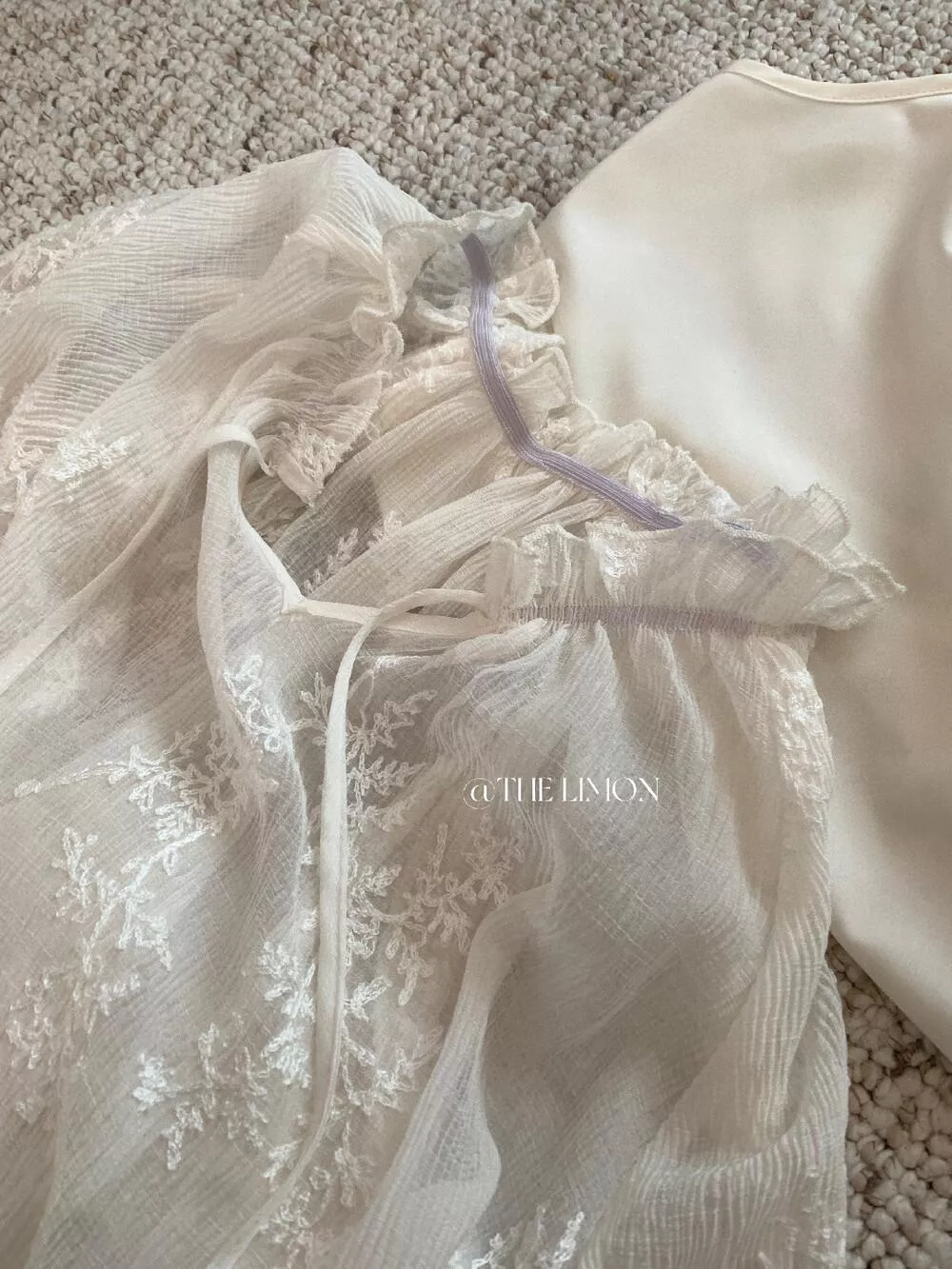 檸檬綠茶-西西里午後~重工V領刺繡繫帶長袖吊帶背心套裝10129