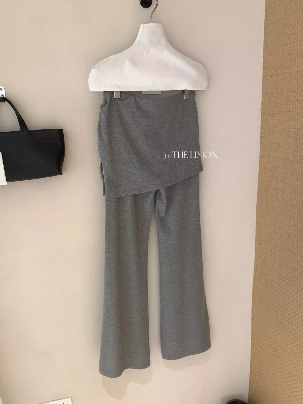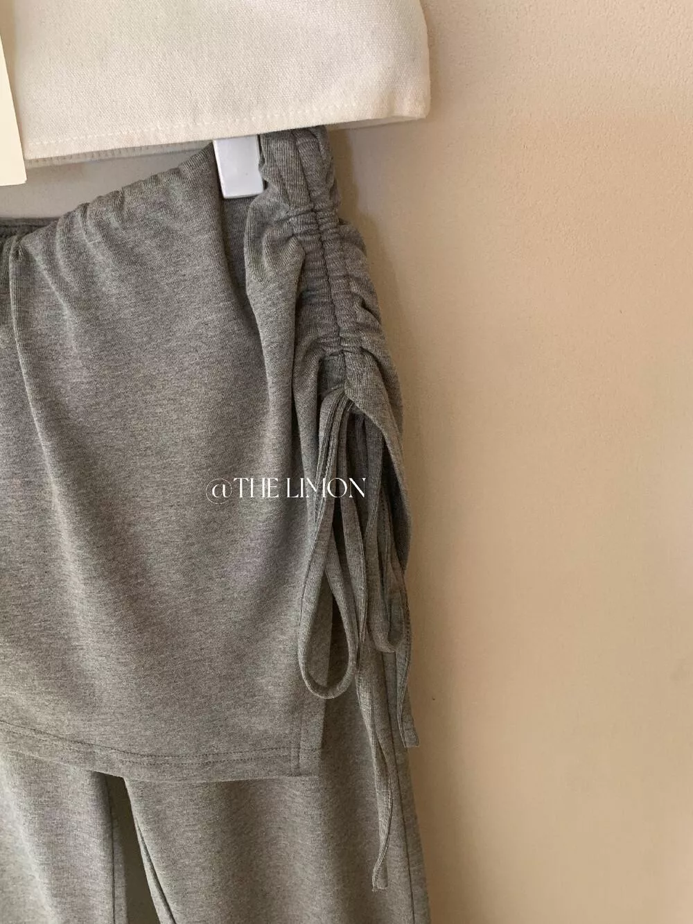 檸檬綠茶-長腿DNA假兩件拼接屁簾抽繩微喇顯瘦休閒褲10216